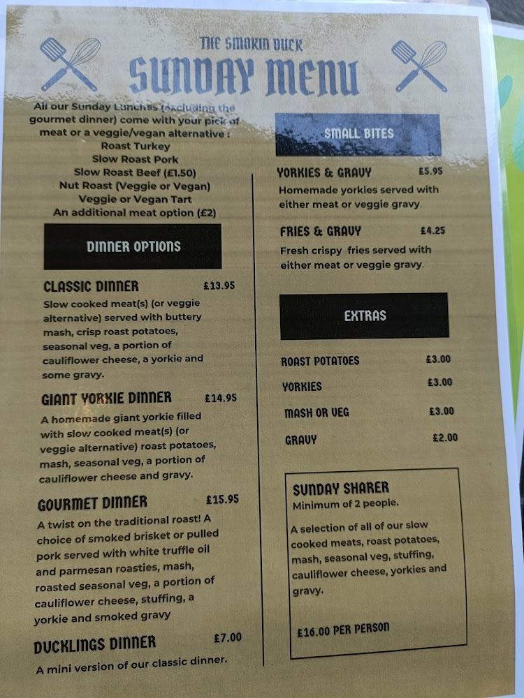 The Smokin Duck sits comfortably in Alsager, a quaint town in Stoke-on-Trent known for its charming community vibe. This restaurant is easily accessible by public transport and features a free parking lot, ensuring convenience for visitors. With its wheelchair-accessible entrance and seating, The Smokin Duck welcomes diners of all abilities, fostering an inclusive atmosphere. Open all week, the eatery also showcases live music, adding a unique total to evenings. Friendly staff greet each patron with warmth, creating a familial vibe that makes everyone feel at home. Dining here isn’t just about the food; it’s about coming together to share experiences and enjoy the simple pleasures of life in a lively setting.